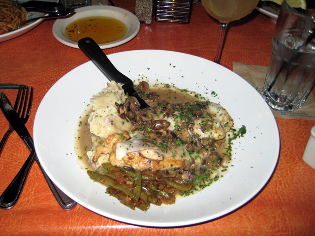 It included scallopini-style chicken layered with prosciutto and mozzarella in a Chianti wild mushroom sauce with garlic mashed potatoes and green beans.