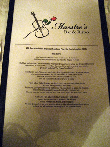 Last night, the Husband and I met up with some friends and headed over to Maestro’s Bar and Bistro, a quaint restaurant nestled away in Pineville. Our friends had been there before, living not too far from the restaurant, and raved about it so we were looking forward to some good food.