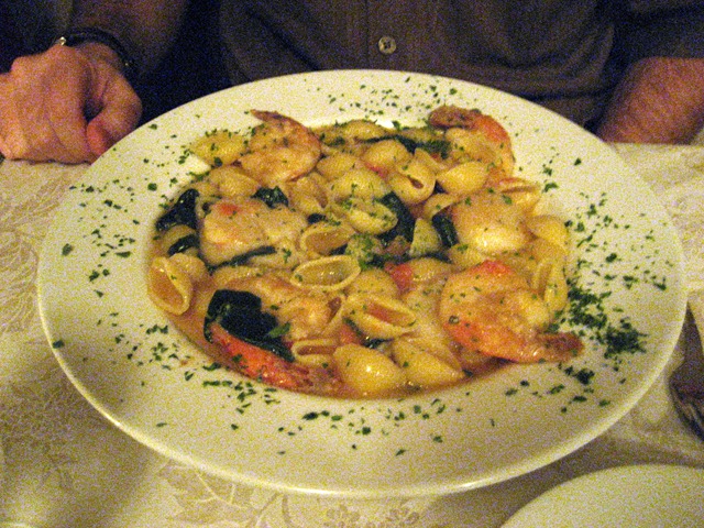 The Husband ordered the Shrimp and Scallop Scampi which included shrimp and scallops sautéed in a lemon garlic sauce with spinach and tomatoes over shell pasta. These flavors melded well together and the dish was quite large. We ended up taking most of it home as the Husband was quite full from the other courses. It was great as leftovers as lunch today too ![]()