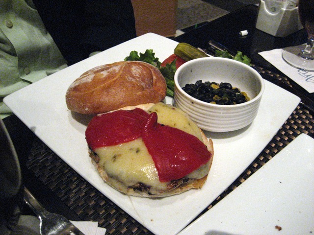 After we finished the apps, we received our entrees. My colleague ordered a Southwestern Turkey Burger I believe. He was quite confused when he poked at the red item on it at first – he thought it was ketchup and didn’t understand why it was solid. I quickly explained it was roasted red pepper and he felt better :-) I believe he enjoyed this meal.