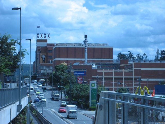 After spending the morning exploring the city of Brisbane on foot, we decided to look into where the XXXX (pronounced FOUREX or 4X) brewery was located as the Husband’s brother mentioned it was in or near Brisbane. The Husband asked someone at the grocery store and learned it was nearby – only 2 train stops away – and we found a flyer in our hotel lobby. We found out that they had tours hourly so we made plans for the afternoon.