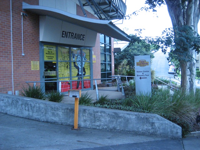 Just before 2pm, we headed back to the lobby and checked my bag (no bags or cameras allowed during the tour… so no photos here). We met our tour guide, Luke, and watched a brief video about safety. The tour included both cheesy parts and very informative sections and we were overall impressed. It actually started, after the safety video, with a diorama of the history of the company, going back to the mid-1800s (1862?). It was set up very similar to a small scale Carousel of Progress, like at Disneyland. At the time, it seemed a little over the top for a simple brewery tour. Little did we realize that the tour would last over an hour, and include multiple videos, a discussion of individual brewing ingredients, and all aspects of the brewing and packing process of the Castlemaine Perkins Brewery. The highlights of the tour included the brewhouse, with its huge brew kettle (hundreds of thousands of litres), the canning line, and the beer storage silos.