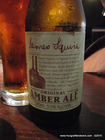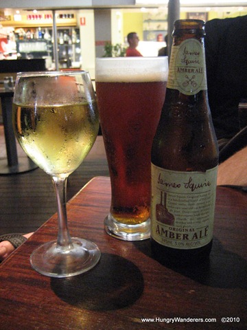 To continue our desire to sample Australian wines and beers, I ordered a glass of the Beresford Beacon Hill Chardonnay. I’m not sure where this winery is, but I really enjoyed the Chardonnay. It was fruity and slightly sweet. The Husband ordered the James Squire Amber Ale. The James Squire enticed us, after a recommendation from his brother’s friend Marcus. This Amber Ale was excellent and the first beer we’ve enjoyed in Australia!