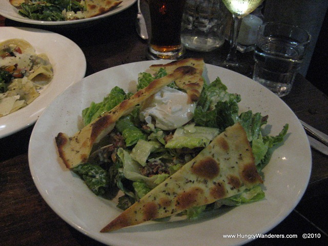 For our salads, we chose Caesar Salads. We were particularly drawn to the poached egg and anchovy descriptions on the menu. Unfortunately, there wasn’t much anchovy flavor (and we didn’t see any anchovies in the dish) and like most of the poached eggs we’ve had, the yolk wasn’t runny. The egg itself went nicely with the salad, but wasn’t quite what we were looking for. If we were to go back, we wouldn’t have ordered the salads, especially for their price.