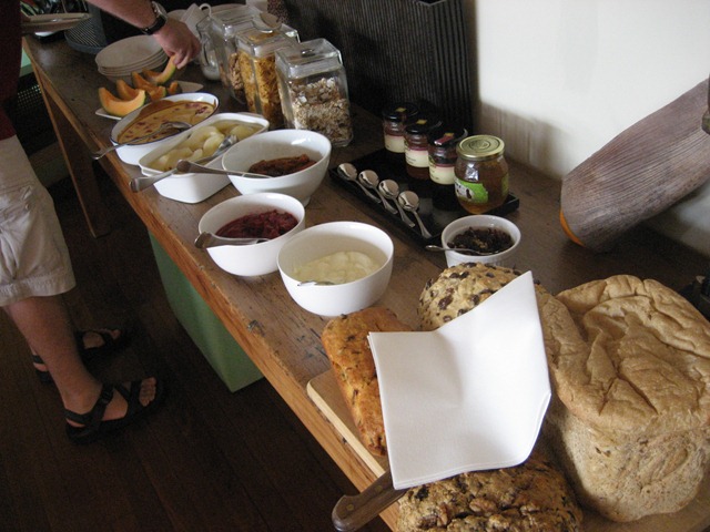 Wayne double checked if we both ate meat and headed back into the kitchen to prepare a hot breakfast for us. We then met Beatrice, his wife, who invited us to check out the buffet and offered us drinks. The buffet alone was wonderful! It included fresh, homemade breads, fruits, and cereals.