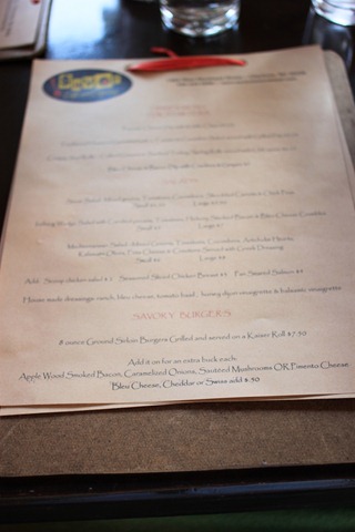 While waiting for Emily & Casey, the four of us started looking through the menu. I already knew what I wanted to eat, but I double checked that it was still on the menu! (It bothers me when restaurants change their menu in the restaurant and not on their website without noting on the website that the menu is subject to change. Not a problem here though!) I love how their menus are clipboards with the pages tied on with pretty ribbon. ![]()