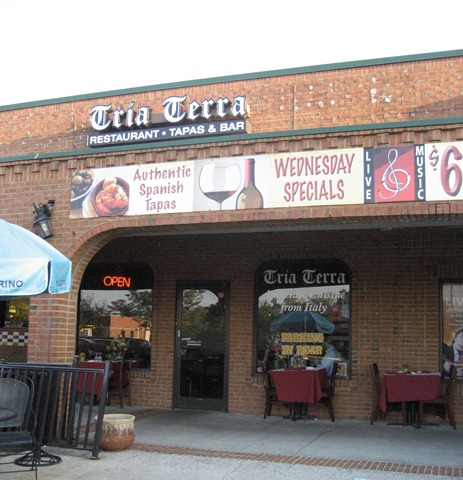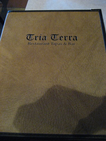 The restaurant is nestled in a shopping center on Pineville-Matthews Road, next to a Chuck E Cheese. I had mistakenly thought I’d passed it numerous times, closer to the street, but that was actually Trio (a restaurant we never had a chance to try). Tria Terra is a generally an Italian restaurant, tapas, and bar. However, the foods I believe are French, Spanish and Italian (tria terra = three lands).