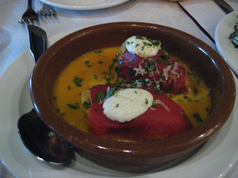 As a group, we decided to get two tapas to share and individual entrees. The first one was the Pimiento Rellenos con Queso de Cabra – stuffed pepper with warm goat cheese. YUM! This was the perfect first dish and really set the standard for the food for the evening.