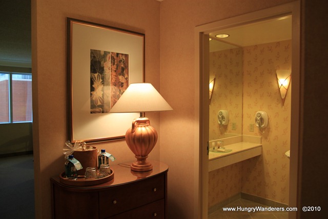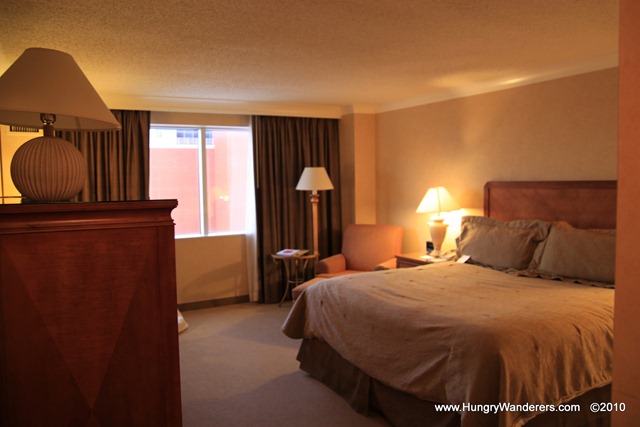 Check in was simple and quick and we headed to the room to drop off our stuff. We had a King room which was very spacious. We later learned that the bed was incredibly comfortable. We didn’t have much of a view from our room but when we’re staying in a room just one night, that doesn’t concern us.