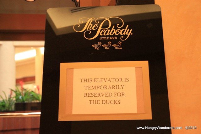 As we headed back to our room to get our things to check out, we saw the sign for the reserved elevator for the ducks. Apparently, they used to have a nicer sign that also had the history on the back, but it mysteriously disappeared a few weeks ago when a high school group was staying at the hotel