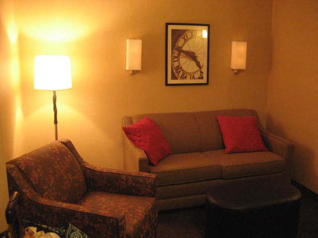 As soon as we walked in, we were impressed. Immediately as you enter the room, there was a decent sized sitting area, with a couch, armchair, and nice flat panel television.