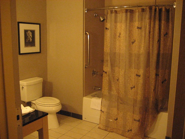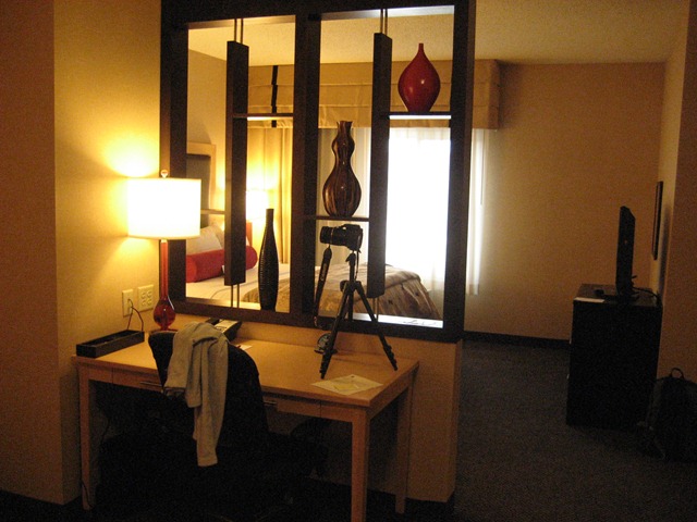The bed was plush (seriously, really, really comfortable – though perhaps too many pillows) and there was also a flat panel television. The closet happened to be on this side of the room and when we poked our heads in, it was huge and had a very large (relatively speaking) safe (not that we used either).
