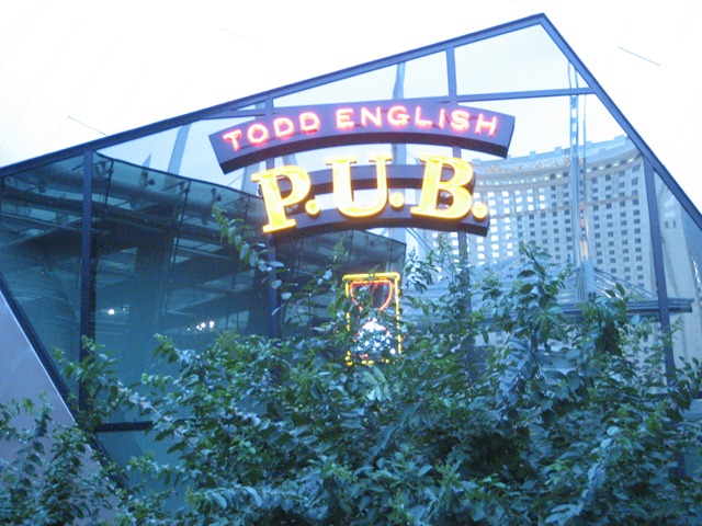 Last week, I had a colleague in town who was staying on the strip near City Center. The Husband and I wanted to meet up with him for dinner and since he was interested in catching that night’s NBA Finals game we decided to check out a Sports Book (my first time!) to place some mini bets and head over to a sports bar for dinner so we could catch some of the game while dined and chatted (with plans to head back to the Sports Book after dinner to catch the end of the game). The last time the Husband and I walked through City Center, I declared that I wanted to go to Todd English’s P.U.B. some time. It wasn’t that I knew who Todd English was because I didn’t (shame on me, I know… I’m working on getting a better idea of who famous chefs are) or that I had any idea about the food, but something about the sign called me in (good job to whoever designed it!). After checking out some reviews, it looked like it would be a good fit for us that night.