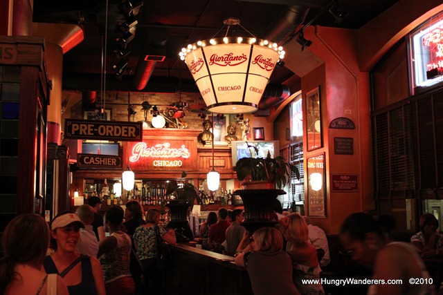 As I mentioned at the Taste of Chicago, the Husband had never had deep dish pizza before. His first slice was at the Taste. He enjoyed it, and looked forward to making it to Giordano’s if there was time, as most of the group talked it up quite a bit (those of us who’d been there). After our mediocre start to a dinner at Navy Pier, we quickly decided to head to the closest Giordano’s we could find – the one on Rush.