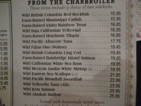 As we were trying to decide, we learned from our server that the fish in the Charbroiler section as well as the oysters arrive fresh EVERY DAY! Pretty cool and helps justify the price of a lot of the fish entrees.