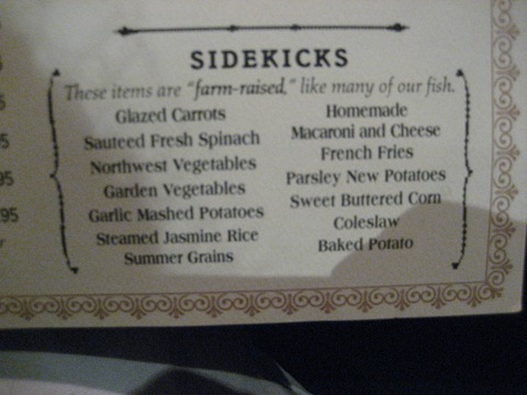 Each of the entrees (unless otherwise noted) came with two “sidekicks.” Who can guess what one of ours was going to be??