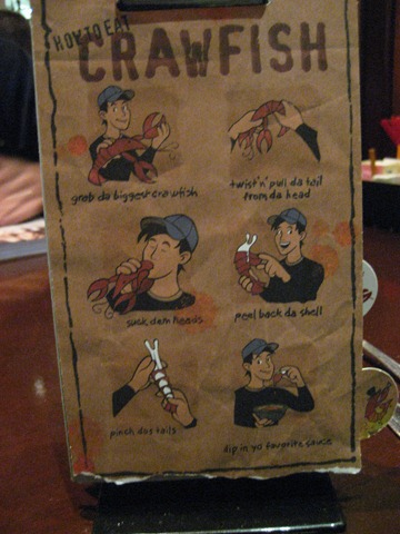 As we waited for our meals, I flipped through the usual flipchart on the table. This one was way cooler! It had a diagram for how to eat crawfish as well as how to eat lobster. Additionally, there were sheets with fun explanations about fish such as swordfish. Very informative yet fun!