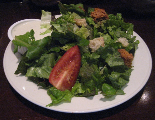 With the entrees, you could get a soup or salad for a few dollars more so the Husband ordered a side salad. It was just the usual – greens, tomatoes, croutons with blue cheese dressing on the side.