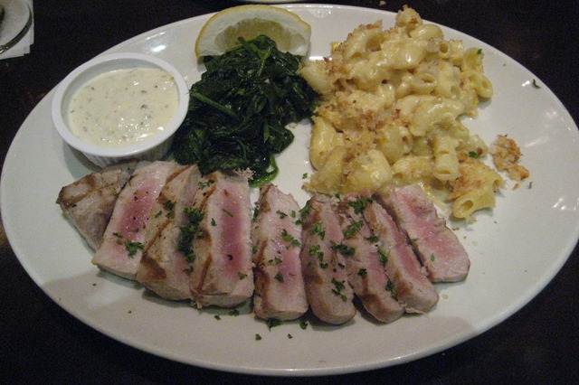 I’m not a fan of sending things back unless there’s something extremely wrong so I tried it as is. It was still moist and quite fresh so I enjoyed about half so I could enjoy the other items on the plate. Of course, I ordered the mac n cheese. It was great! I also had the sauteed spinach which was very, very good. I have spinach and tuna saved for lunch tomorrow. Yum!