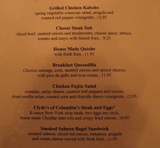 During brunch, Clyde’s offers a wide range of brunch items as well as their normal lunch items. (Photos below are just of the brunch page)