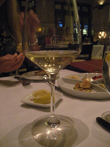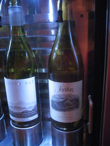 I went with a glass of the Jordan Chardonnay (2007) from Napa Valley. $10 doesn’t go very far in the giant glasses but it was a nice taste with my meal.