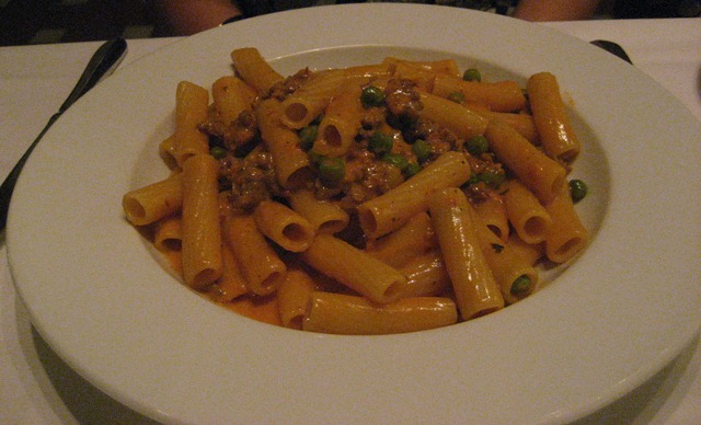 When we made it back to the table, it was time for course two. Michelle ordered the Rigatoni with Spicy Sausage and Peas in a Tomato Cream Sauce. This dish was amazing! They clearly took the time to let the sauce cook for a long time as you could taste the spicy sausage throughout the dish, even without sausage on your fork. If you don’t like spicy food, though, this dish isn’t for you.