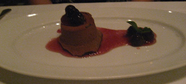 Our third and final course was dessert of course. Michelle ordered the Chocolate Decadence while I ordered the Lemon Angel Cake with Berries. Unfortunately, we were both disappointed with our desserts. The chocolate was good but there was a cherry sauce we both disliked.