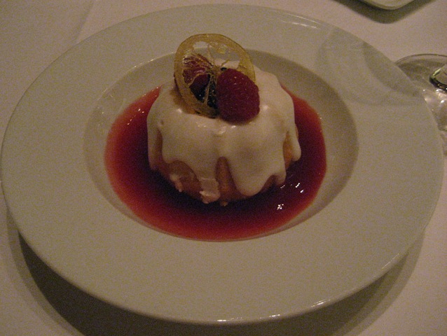 The caramelized lemon and the berries on top were good, but the cake was too thick for me and the frosting too sweet. I was expecting a lighter dish. Perhaps if I expected the thicker cake and sweetness, I would have enjoyed it more.