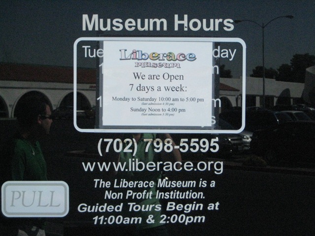 When we moved to Las Vegas, we truthfully had no idea who Liberace was. The name sounded familiar but we didn’t recall knowing much about him, if anything. Friends had been to his museum, though, in town, and we planned one day to go ourselves. As I was skimming the New York Times on my iPhone a few weeks ago, I learned that the museum is closing in mid-October. With a big travel schedule the next few weeks, we moved our “one day” up to this past weekend. (Oops! Wish we had gotten this out earlier! The rest of this post is in real time