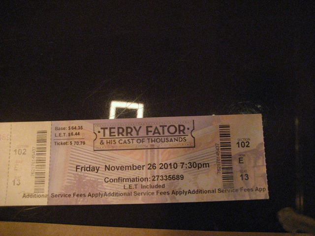 While my family was in town for Thanksgiving, my mom wanted to treat us all to a show to celebrate their anniversary, Thanksgiving, and the Husband’s birthday. After looking to see what was available, my mom decided on Terry Fator at The Mirage.