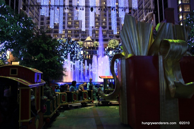 From the main lobby area, we saw the Christmas tree in the distance and took some escalators down to find the train.