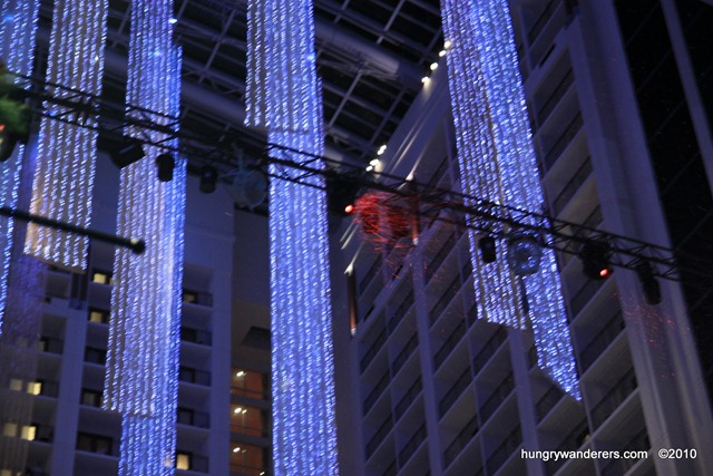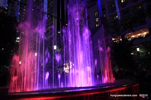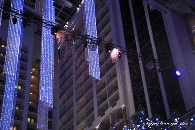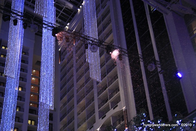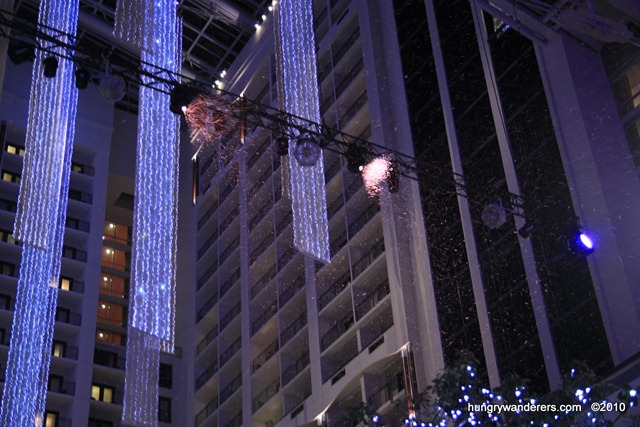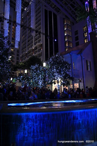 The fountain show continues hourly at 7pm, 8pm, and 9pm. Throughout the atrium, there are beautiful “northern lights” sparkling throughout.