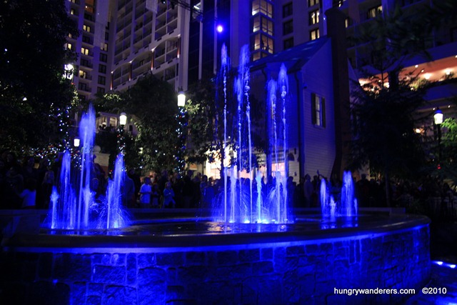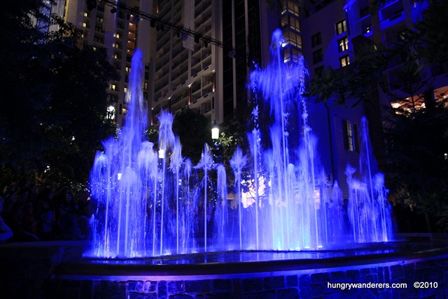 Behind the train (or in front of it depending on your perspective) was a fountain that changed colors throughout the wait. It was also the location of an fountain show which you’ll see farther down in this post.