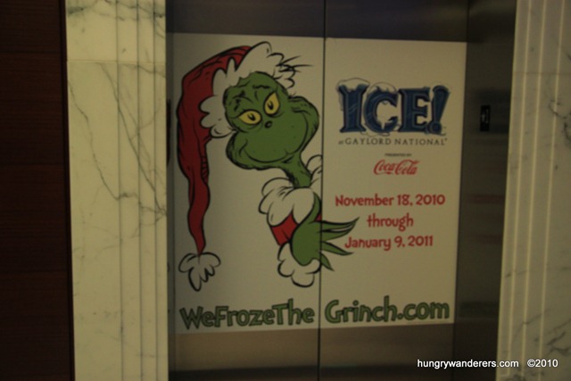 As we headed to the glass elevators for a “free ride” with the kids (who knew riding in a glass elevator was so exciting?!?!), we saw The Grinch who must have been taking a break from the ICE! Experience.