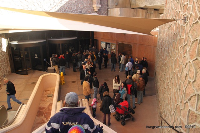 In order to enter the tour areas (you can see the dam without tickets from the roadway and sidewalks), we took an escalator down and got in line for security. This may look like a long line but it flowed relatively well.