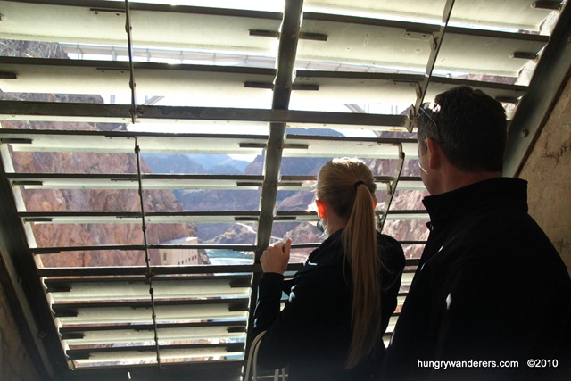 At this point, the 21 of us in the Hoover Dam tour broke away from the Power Plant tour group and went off with our tour guide Leslie (who was awesome!). She took us through the original waiting areas for tours back in the day and we headed to an inspection point. We were lined up in the tunnel and then our mini groups each got a bit of time at the inspection vent for some photo opportunities.