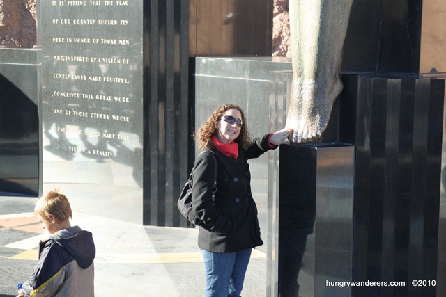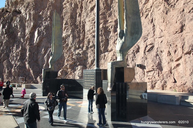 Before we headed out, we spent some time at the Monument of Dedication on the Nevada side. Here there is a flag pole and two very tall winged creatures called the Winged Figures of the Republic.