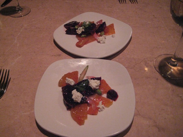 My friend and I tend to have the same taste in food and the same items caught both our eyes so we decided to split everything. The staff were awesome and split our food onto separate plates without us asking. Up first was the 2 Color Beet Salad which included fennel, graprefruit, goat cheese, and a horseradish dressing.