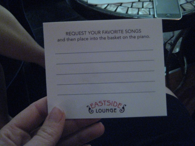 Each of the tables had notepads/cards where you could request songs.