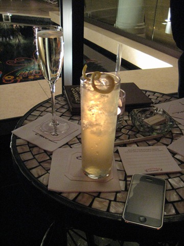 During performances after 9pm, the lounge has a 2 drink minimum (which we knew going into it) and the drinks of course are “Vegas prices.” They offered up twists and their own unique concoctions though which I appreciated it. Our wonderful cocktail waitress advised that they have a mixologist who comes up with their drink menu. I spent a lot of time looking at the menu and found ingredients here and there that I didn’t like but I found one drink that intrigued me – the Spiced Apple Mule. It was Moon Mountain Organic Citrus Vodkaa, Thatcher’s Apple Spice Ginger Organic Liqueur, fresh lemon juice, and Natural Fever-Tree Ginger Beer. It was fun and interesting!