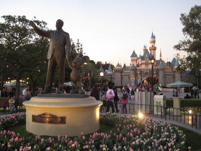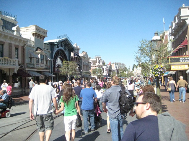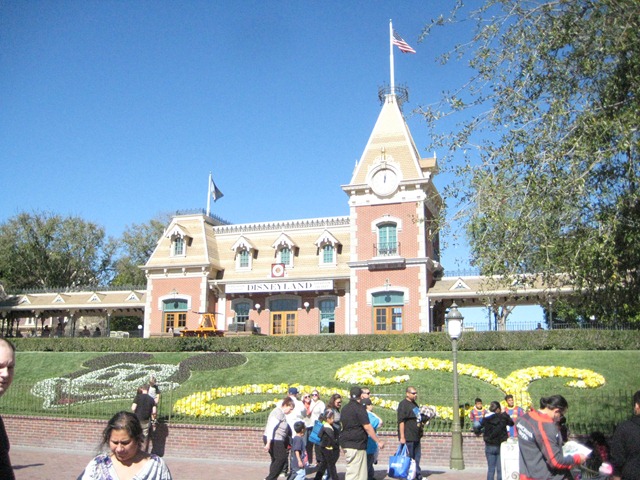 Disneyland itself was first on the list for parks to explore. As soon as we walked through the ticket taking section (where they switched our giant paper tickets for ones that would fit in our pockets), we were greeted by the Mickey’s face in the grass and the Disney Railroad. I suggested to the Husband we hop on board and ride all the way around the park so he could see it all at once before heading to the rest of the rides.