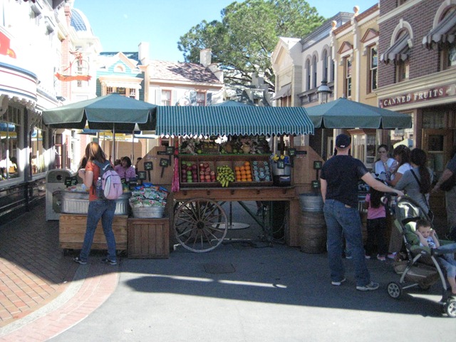 I was impressed with the availability of healthy snacks at the park, including this produce cart o Main Street.