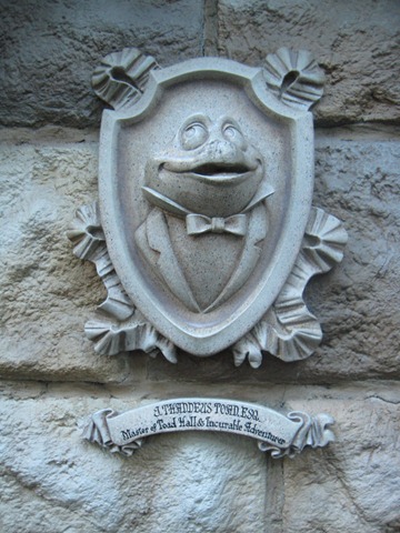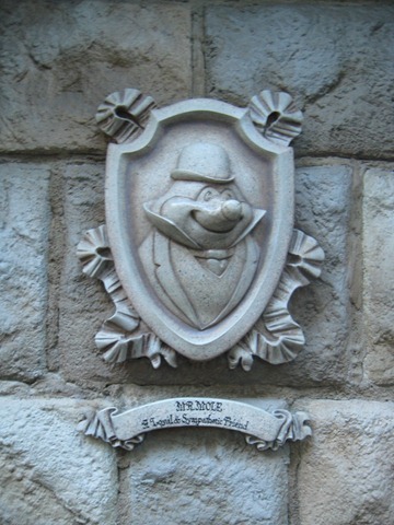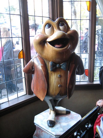 After determining that the line to the Matterhorn was too long (45 minutes or so), we headed back to Mr. Toad’s Wild Ride and found the line to be moving. I enjoyed the decorations as we waited in line ![]()