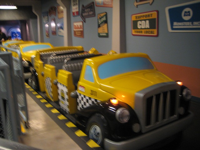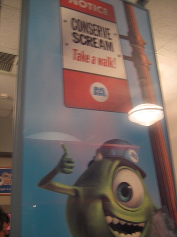 In the courtyard outside the theatre, they had loud techno/house music playing and many cast members dressed at TRON characters. To get away from it all, we found ourselves in a Monster Inc ride (we only just saw the movie for the first time a few weeks ago! If you haven’t seen it, we do recommend it!). The ride was cute!