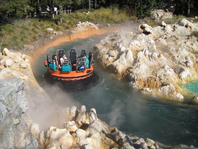 When we arrived, we were on a mission – to get FastPasses for the World of Color night show, ensuring us standing space along the water for the first show of the night at 8pm. The FastPass area was next to the rapids so as the Husband got our tickets (only one per group was allowed in the ticket area), I admired the rapids ride from above (it was too chilly to ride!).