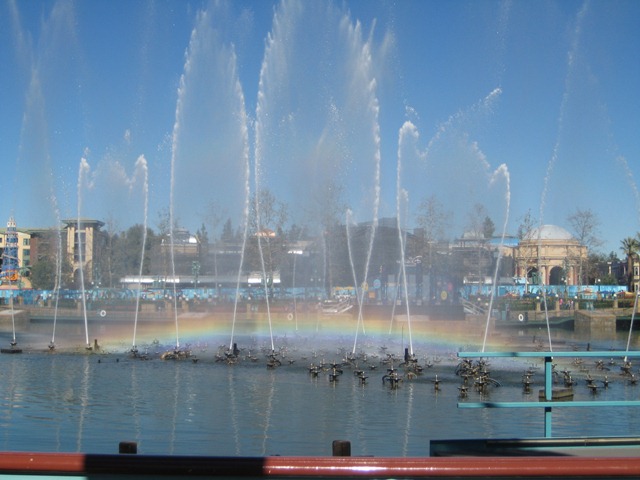 Paradise Pier is where the World of Color showcase is each night and they were testing the fountains during the day. A beautiful rainbow appeared as we walked by.