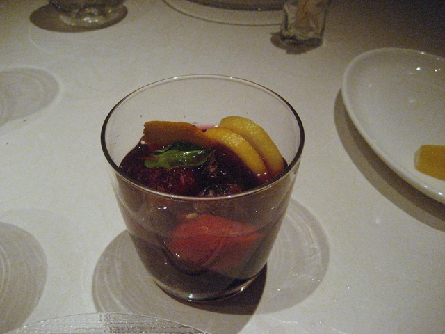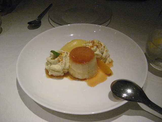 At this point, we were satisfied, but not stuffed. We figured we’d find out what was on the dessert menu. When our waitress told us what was available, she got so excited about one that we just had to have it. We ordered the Flan al estilo tradicional de mama Marisa con espuma de crema Catalana – a classic Spanish custard (flan) with Catalan cream and oranges. Normally I am not a flan fan, but the texture on this was wonderful – firm yet creamy, slightly sweet, a hint of orange. It was a wonderful dish and perfectly shared between the three of us.