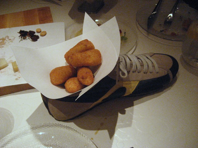 The second fried dish came out in a shoe! I’m not sure why, but it looked like it was a popular dish as I saw many shoes go by. This was the Croquetas de pollo – traditional chicken fritters. According to their menu, it’s one of the most popular and I see why! (or taste why!) This was delish! (lots of exclamation points – guess this one made me excited). The chicken was tender and was mixed with a creamy sauce inside of a perfectly fried outside.
