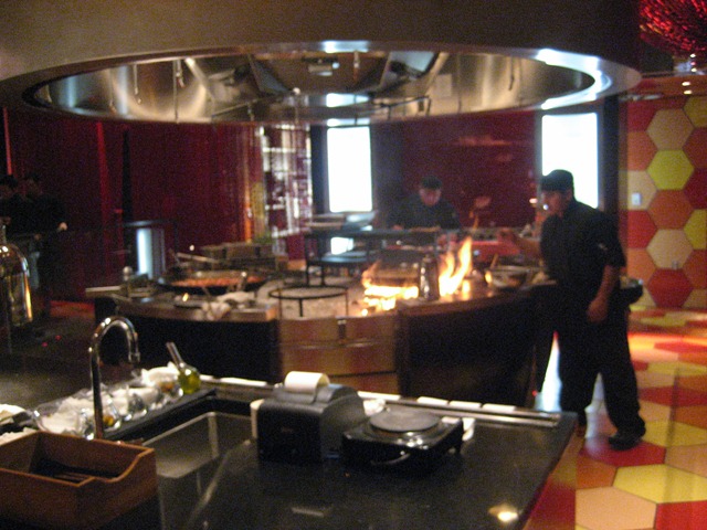 All of the restaurants at the Cosmopolitan are using OpenTable.com for reservations so it was quick and easy to get one set up for us. Two of us showed up right on time and got seated even though third was still on her way. As we walked in, we walked through an open bar area, an area that looked almost like a sushi bar, and this giant grill.