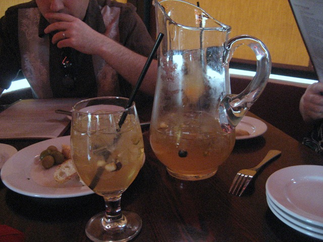 We also put in an order for a pitcher of the sparkling white sangria which included champagne and peach. I liked the splash of bubbles and slight hint of peach.